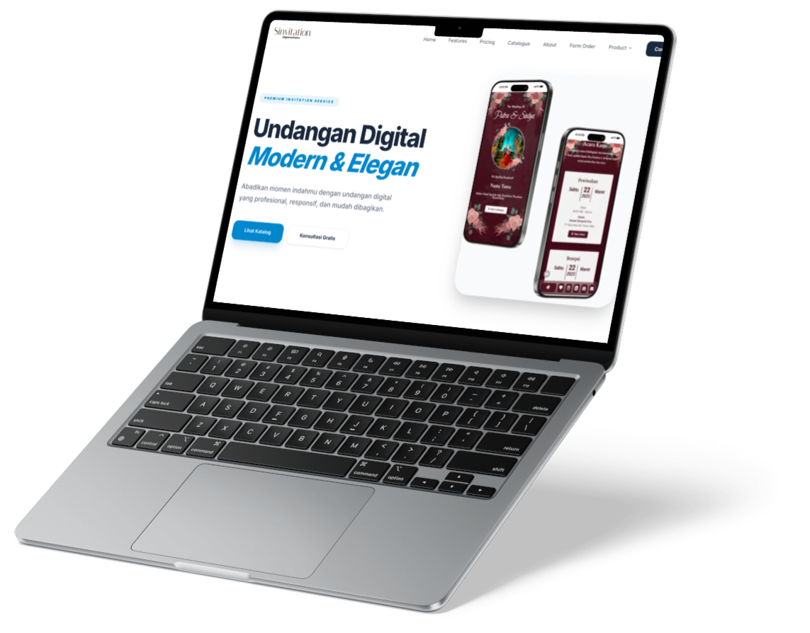 Sinvitation adalah platform undangan digital yang dirancang untuk memudahkan pembuatan dan pengelolaan undangan digital. Dengan antarmuka yang modern dan responsif, Sinvitation memungkinkan pengguna untuk membuat undangan digital dengan mudah dan cepat.